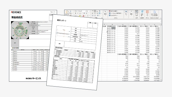 検査成績書や統計レポートもクリックするだけで作成できます。データの転記やPCへの入力といった手間がかかりません。USB機器やLANの共有機能を使うことで、測定データの表計算ソフトへの取り込み、加工も簡単にできます。