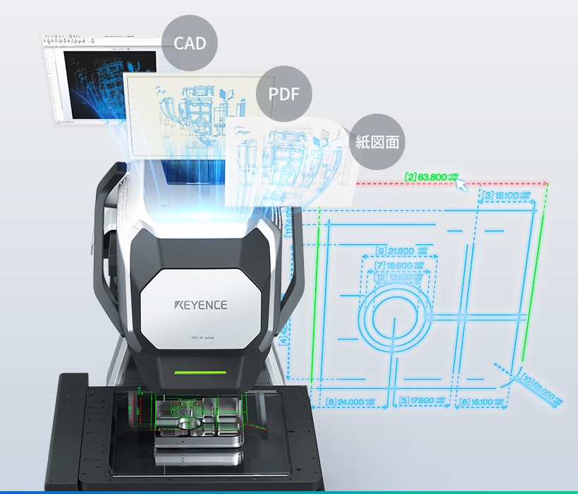 CAD/PDF/紙図面から、測定箇所や公差などの情報を自動で取得。