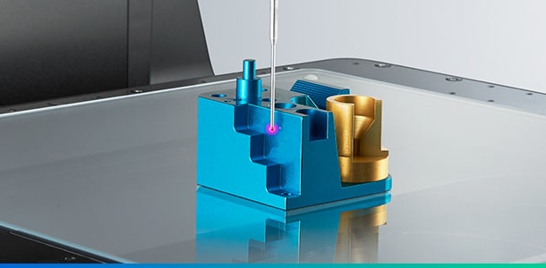 縦‧横‧斜め に自在に動く低測定圧タッチプローブが、狙った箇所をソフトタッチで測定します。立体形状のワークでも確実に測定可能。