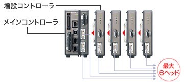 メインコントローラに増設コントローラを接続することで、最大6ヘッドの同時測定が可能。
