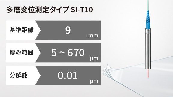形状測定能力の高いSI-Tシリーズは、「ø30μmの小スポットと1msの高速サンプリング」により、細かな厚みプロファイルを提供します。