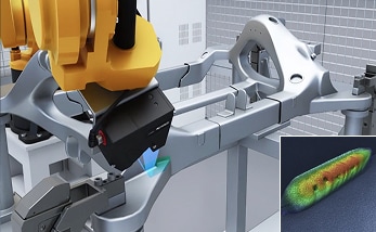 溶接ロボットのアーム先端またはコンベア上にLJ-X8000シリーズ/LJ-S8000シリーズを搭載。溶接直後のビードをインラインでスキャンします。
