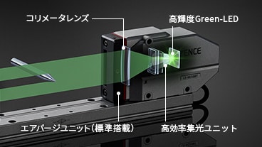 キーエンス独自の光学設計により、駆動部が全くありません。また、光源はLEDを採用しているので、サージノイズによる劣化もありません。現場で、長期にわたって、安心してご使用いただけます。