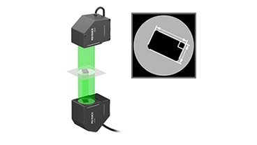 対象物が投光部と受光部の間を通るときに、寸法を測定する測定器です。投光部や受光部に高機能なテレセントリックレンズを採用しており、視界全域のひずみを最小限に抑え、駆動部がなく長寿命かつ高耐久なLED光源の平行光のみを受光します。そのため、長期間高精度で安定した測定が可能です。