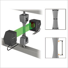 外径測定器を用いたインライン寸法測定では、線材や押出し成形品、シートなど、線や棒、ウェブ状のワークを連続して測定することができます。常時露光により測定が途切れないため、検査モレや不良箇所の見逃しが生じません。