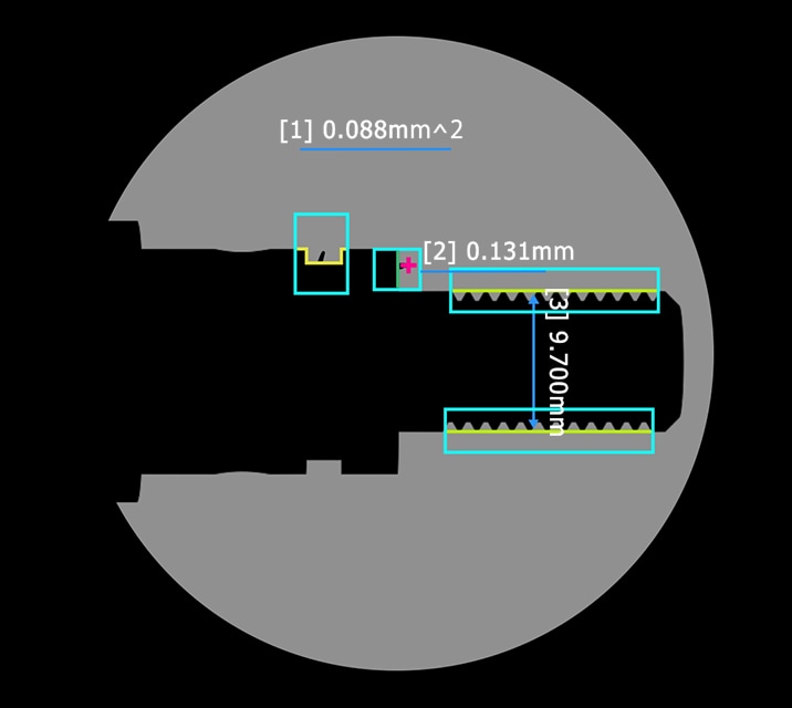 組み合わせにより100を超える測定ツールを用意。寸法測定、幾何公差測定、マスター面積比較、異物距離測定などインライン検査に必要とされるあらゆる内容に対応します。