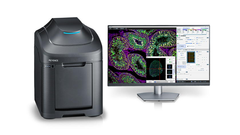 さらに、光学切片像を撮影するためのセクショニング機能や、自動で撮影画像を繋ぎ合わせるイメージジョイント機能、定量解析を自動化するハイブリッドセルカウント/イメージサイトメーター機能など、さまざまな標本に対応する豊富な拡張機能を備えています。これらの高性能と設置性・操作性は、オールインワン蛍光顕微鏡である「BZ-X」シリーズならではの特長といえます。
