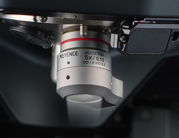 白色干渉5倍レンズが新登場。従来比4倍の視野で広範囲測定が可能となりました。小さな形状変化も正確に捉え、スキャンが難しい透明体や鏡面体にも対応できます。