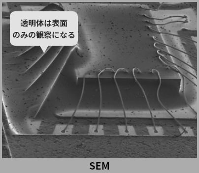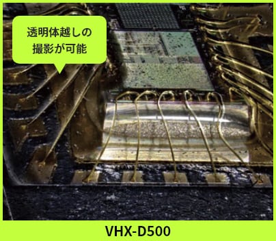 SEM像では透明体などでも表面のみの観察となってしまいますが、VHX‐D500であれば透明体越しの撮影も可能です。
