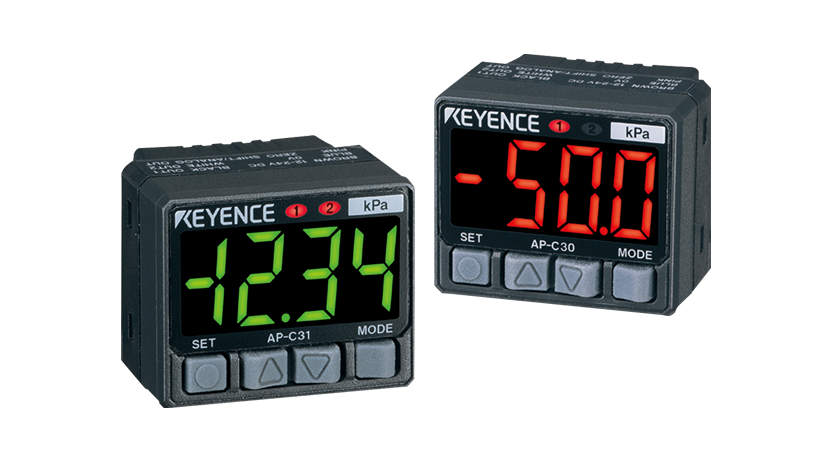 超小型デジタル圧力センサ AP-C30シリーズは、省スペースな超小型ボディを採用した気体用圧力センサです。回転式圧力ポートを採用し、設置の自由度を向上させました。25×30mmのコンパクトなセンサ本体に見やすい表示器を内蔵することで、設置性と視認性を両立。また、本体で設定値にダイレクトアクセス可能です。操作ボタンは人間工学に基づいた高さや形状、そして誤操作を防止するボタンレイアウトを採用し、省スペースでありながら使いやすさも追求しています。さらに、複数の本体を並べて設置できる取付アタッチメントを複数種ラインナップし、設置場所に合った取り付けパターンを選ぶことでスマートな設置・運用が可能となります。