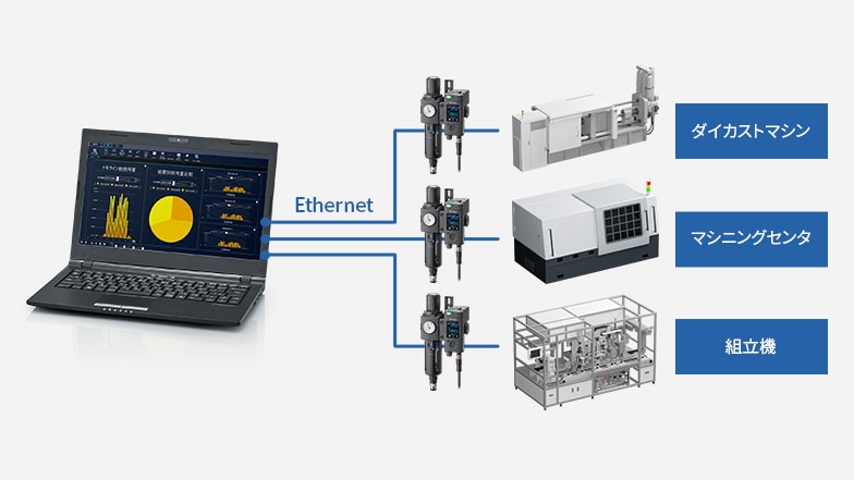 詳しくは、カタログ(PDF)をダウンロードしてご覧ください。エア&電気使用量を見える化