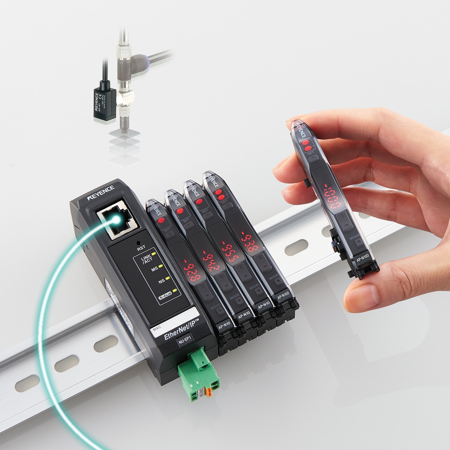 ファイバセンサ、レーザーセンサ、流量センサなど、様々なセンサと連結することができ、一括でネットワーク化できます。
