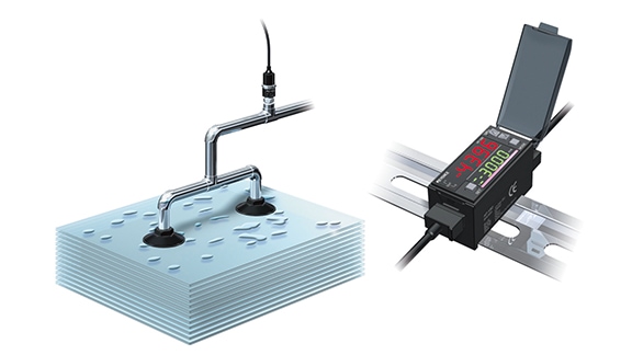 全ての機種で2つのON/OFF出力を標準装備していますので、吸着だけでなく、ワークの離脱確認も同時に行なえます。