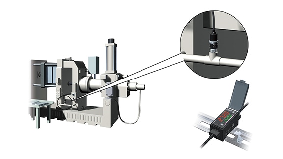コンプレッサーの元圧を確認することで、装置の異常を管理します。ダストやミストが混ざっているエアーの検出も、検出部が一体構造のため安心です。