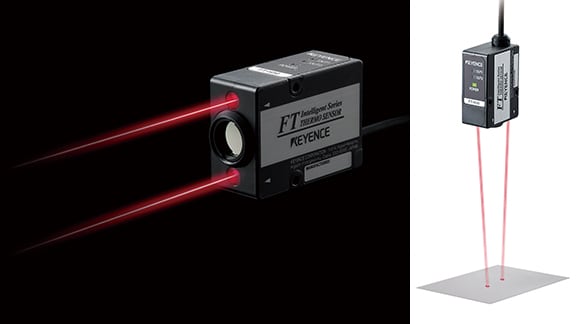 デジタル放射温度センサ FTシリーズは、幅広い検出温度と高い応答性、長い検出距離、さらに設置や設定時の使いやすさにこだわったデジタル放射温度センサです。温度検出を行うサーモパイル(熱電対列)の遠赤外線吸収膜を極限まで薄くし、熱電対を効率よく配置しました。これにより、吸収した熱をすばやく確実に検出することが可能になり、速いサーモパイルの応答を実現しました。また、高温タイプと中低温タイプがあり、可視光レーザーで検出範囲を目視することができるため、センサ設置時の位置合わせが簡単です。アンプは、検出体の現在温度を直接入力でき、物質固有の放射率を対象物に合わせて設定する手間がなくなります。