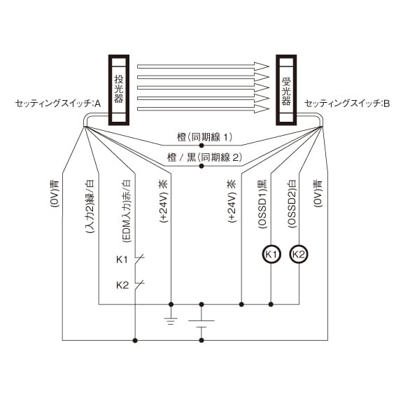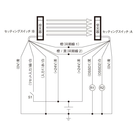 ※2センター表示灯を固定モードとする場合は、緑/白線および赤/白線は+24Vと接続してください。