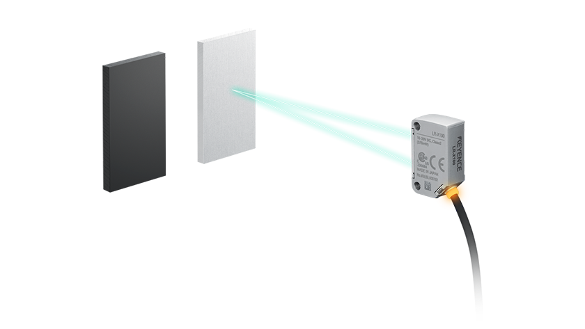 • レーザセンサは、投光素子として直進性のある“レーザ”を採用したセンサです。スポットが見えるため、光軸合わせや検出位置の特定が容易になります。また光が拡がらないため光の回り込みなどを気にせず設置できます。