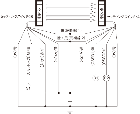 ※2センター表示灯を固定モードとする場合は、緑/白線および赤/白線は+24Vと接続してください。