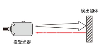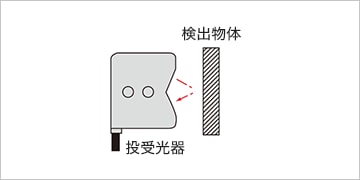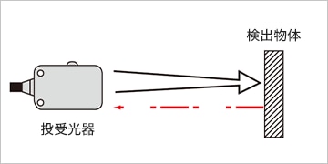 検出物体に光を照射し、検出物体からの反射光を受光して検出します。センサ本体だけの設置で済み、受光器や反射板は不要、光軸合わせも不要です。反射体であれば透明体も検出でき、色の判別も可能です。