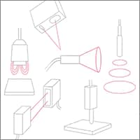 ファイバセンサの検出方式には、反射型、透過型、回帰反射型、限定反射型などがあり、いずれもLED光などを使った非接触による検出です。ワークもセンサも傷つくことがありません。