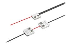 一方、ファイバセンサは、基本的には光電センサと同じ原理で物体を検出しますが、アンプ部とヘッド部がファイバユニットで接続されている点が異なります。光を出力するアンプ部と投光/受光するヘッド部がわかれているため、両方の組み合わせによって、さまざまな温度・湿度環境や素材の検出に対応できます。また、ファイバユニットは非常に細くコンパクトであるため、設置場所の制限も少ないというメリットがあります。 -