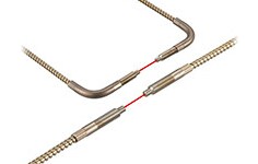 ファイバユニットは細く、ヘッド部分はコンパクトなので、狭い隙間を通してワーク近辺の小さなスペースに取り付けることができます。また、ファイバユニットのケーブルには柔軟性があるため、ヘッドの設置場所までケーブルを折り曲げての設置が可能。これにより、ファイバアンプの取り付け場所を自由に選ぶことができ、たとえば、激しく動作するロボットアームに取り付けても、ファイバユニットが切断されることはありません。そして、ファイバユニットには電気回路のないため、温度や湿度、振動や衝撃、液体などに強く、電気ノイズなどが発生する場所でも高い信頼性で動作します。さらに、赤色LEDなどの可視光を使用するタイプでは照射光が目に見えるので、ワークの位置合わせなどが簡単に行えます。