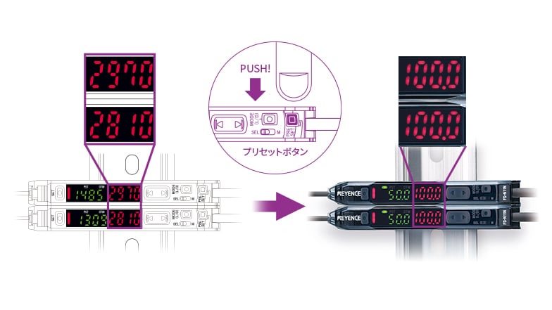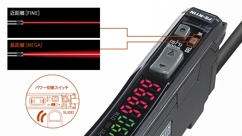 長距離検出をしたい場合や、細径のファイバセンサを使いたい場合も、確実・簡単に設定可能です。