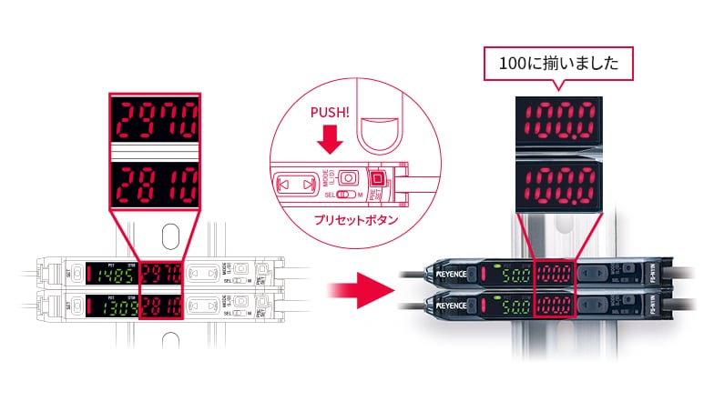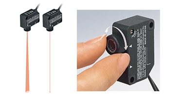 どこを検出しているのか目で見てわかるので、設置時の位置合わせも簡単。また、長距離でも光が広がらず小スポットのままだから、設置自由度が高く高精度に検出できます。