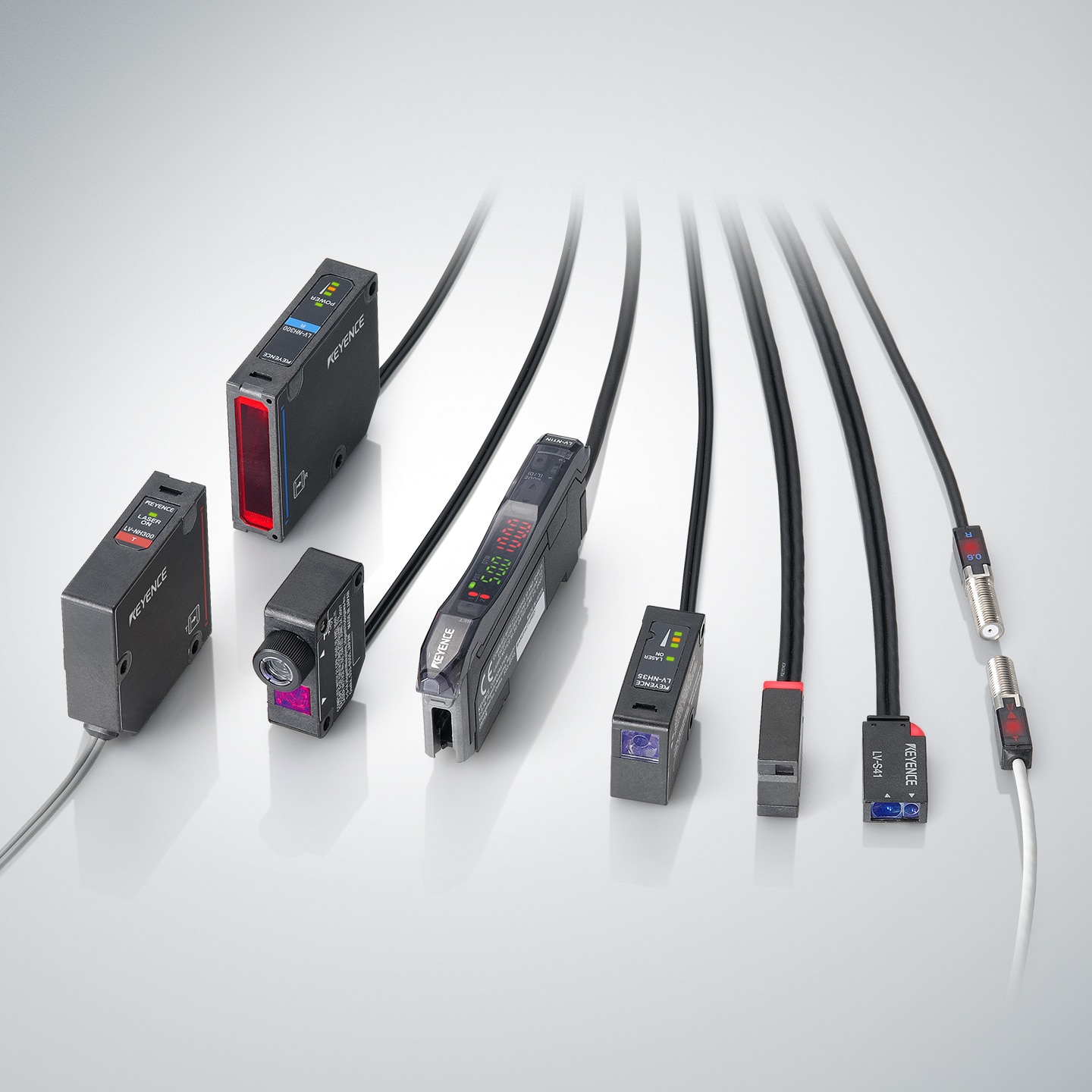 穴越しや狭い隙間から狙える同軸構造タイプ、シリーズ最小のΦ50μm極小スポットタイプ、30mm平行光エリアタイプ、透明体検出タイプなど、多彩なバリエーションのセンサヘッドをご用意。
