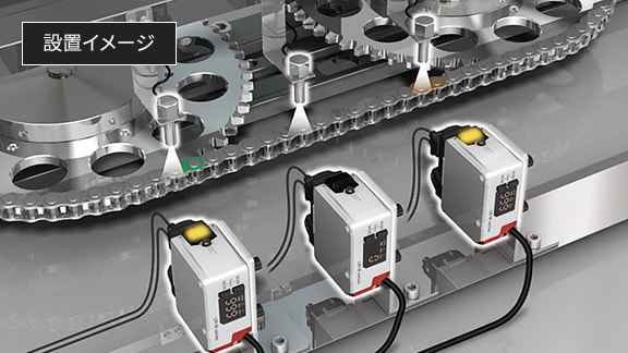 小型・省スペースのファイバセンサ(FUシリーズ)を使用することにより、あらゆる環境に適応可能です。装置内部などの入り組んだ環境に最適。専用レンズを使用すればスポット径を1mm以下にできるので、微小ワークの検出にも対応できます。