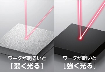 センサがモニタした受光量に応じて感度を自動調整するので、ワークの色や傾きの影響を低減できます。