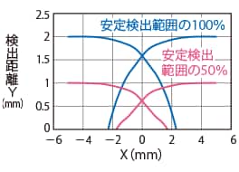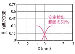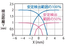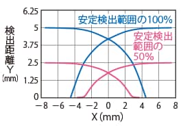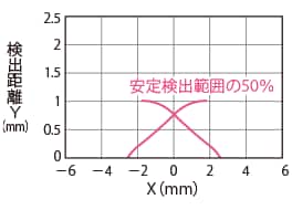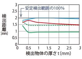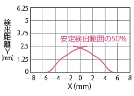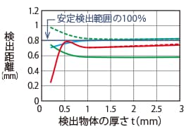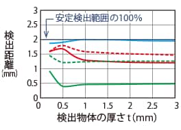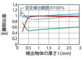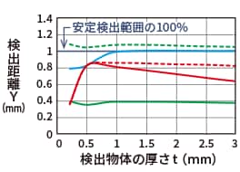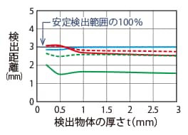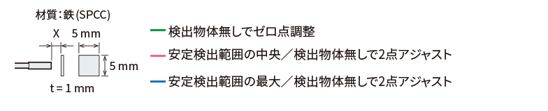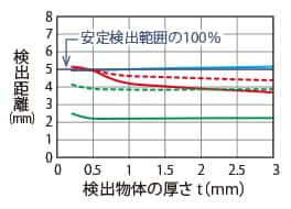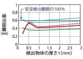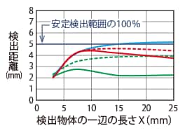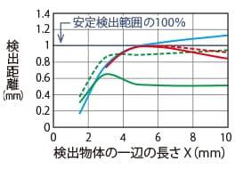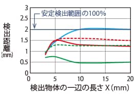 検出物体サイズ:5 mm×5 mm 厚さ t=1 mm(標準検出物体サイズ)ノーマルモード