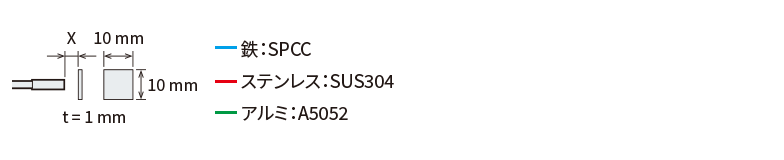 検出物体サイズ:10 mm×10 mm 厚さ=t mm
