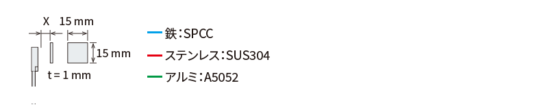 検出物体サイズ:15 mm×15 mm 厚さ=t mm