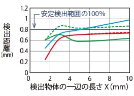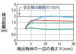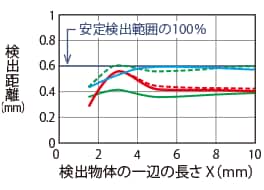 検出物体サイズ:10 mm×10 mm 厚さ t=1 mm(標準検出物体サイズ)ノーマルモード