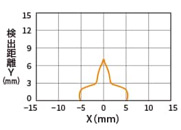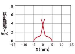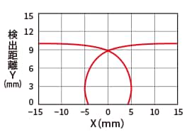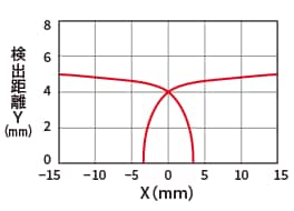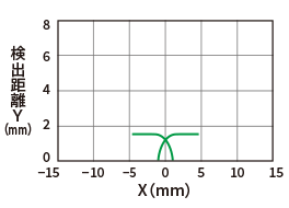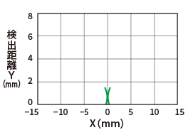標準検出物体(仕様に規定)をセンサに対して矢印の方向に平行移動させたときの、ON点の位置を表したものです。