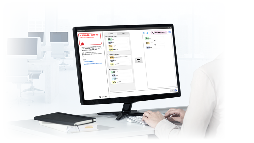 導入がしやすく、大幅な業務効率化につながるRPAですが、実際に導入してみるとシナリオ作成が大変だったり、プログラミング技術が必要だったり、うまく活用できないことも多いRPA。そこでキーエンスでは、導入から稼働までナビ付きで簡単運用にこだわったRPA『RKシリーズ』をご用意しております。RPAツールとしては後発の『RKシリーズ』ですが、そのぶん使いやすく、簡単に業務を自動化できるようになっています。