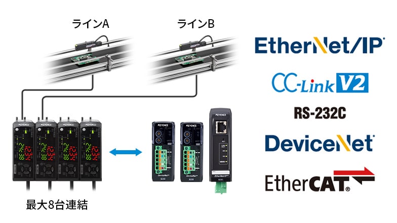 また、通信ユニットを使用することで、親機・子機で連結された最大8台のデータを一括送信できます。