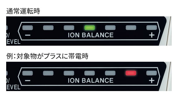 I.C.C.制御による自動センシング&フィードバック機能搭載。帯電量に合わせた最適なバランスでイオン供給を行なうことで、導入時やメンテナンス時のわずらわしい初期セッティングが不要となり、より効果的な除電が行なえます。