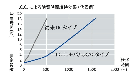 定評のあるパルスAC方式とI.C.C.制御を組み合わせることにより、クラス最高の1電極当たりのイオン生成量を実現しました。