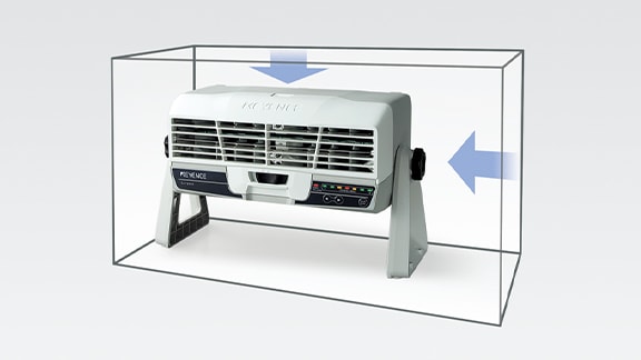 またハイパワーファンとルーバ構造を組み込むことにより、クラス最高速で広い除電領域を実現しました。
