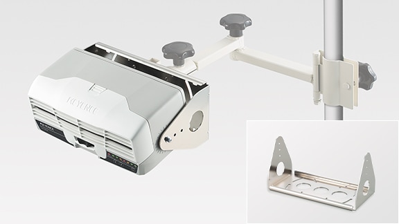 作業台のポール等に取り付けて使用することにより、限られたスペースでも除電器をご使用いただけます。