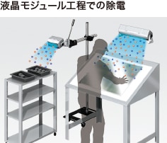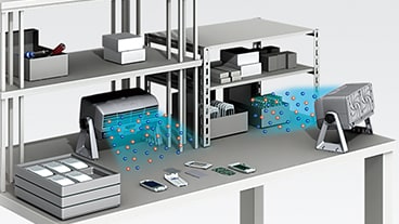 製品・人体・周辺部品を含めた環境全体を除電することにより、さらなる静電気トラブルの低減を実現します。