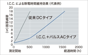 キーエンス独自のI.C.C.制御を搭載することにより、針の磨耗や汚れで発生する除電能力の悪化を減少させ、従来比3倍の省メンテナンスを実現します。
