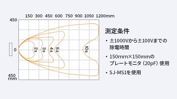 除電領域と時間(エア圧0.5MPa)