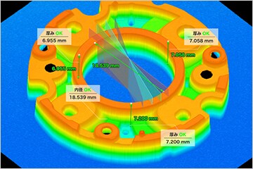 画像処理されたデータを使ってOK/NGの判定や、計測した寸法が指定された公差(許容範囲)に則しているかどうかを判定します。判定結果や画像処理後のデータを出力します。