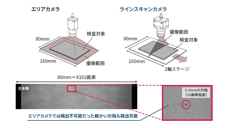 エリアカメラでは検出不可能だった細かい欠陥も検出可能