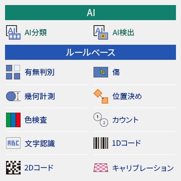 VSシリーズは不良品学習AI、良品学習AI、ルールベースの融合で用途、目的に応じて最適なツールの組み合わせが自由自在です。