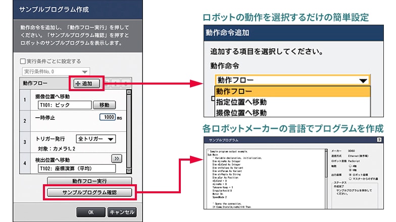 直感的に動作フローを指定するだけで、自動的にロボットプログラムを作成。