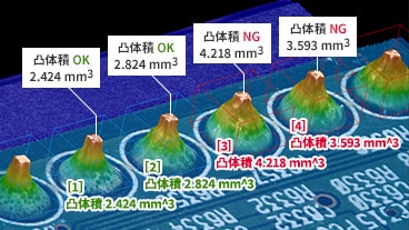 高速制御された4 投光プロジェクターとテレセントリックレンズが視野全域を高速に検査します。